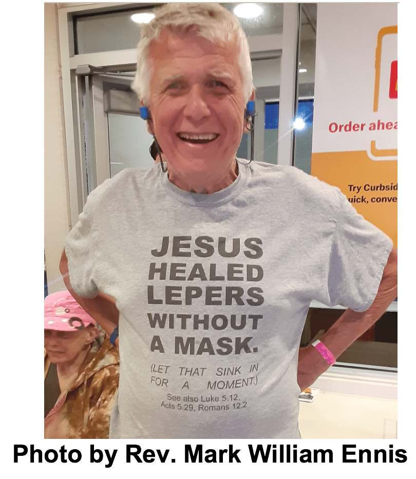 The week before I left for vacation I spent a wonderful day down the Jersey Shore. On the way home after a full day, I stopped in a McDonalds for a coffee to go. In the McDonalds was a man who wore a shirt that proclaimed, “Jesus Healed Lepers Without A Mask.” He graciously allowed me to photograph him. As I wear a mask to shield me from Covid-19, he expressed surprise that someone wearing a mask would want a photograph of his shirt.