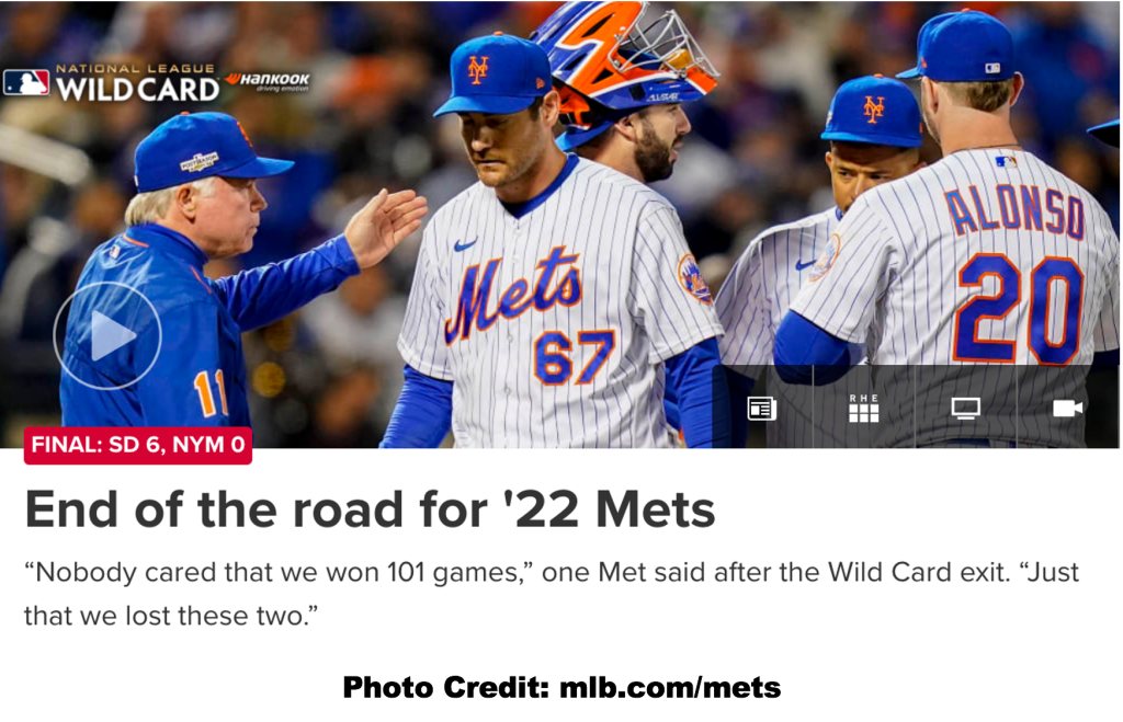 I hope that my beloved Mets learn this lesson and earn a few championships next season.