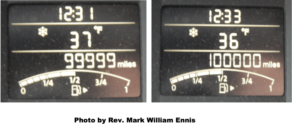 Nothing happened when the odometer changed to this number. There was no trumpet fanfare. No balloons or confetti fell from the roof of the car. My car, “Irma,” did not even seem to notice. She just kept driving along as if nothing ever happened and ultimately got me to my destination.
