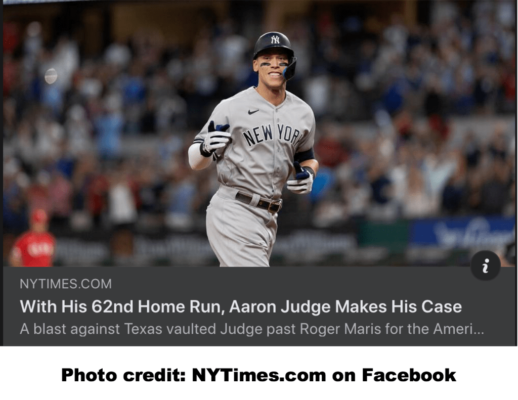 Met fan or not, I can’t help but be celebrating the wonderful accomplishment of Aaron Judge who this past week set the record for the most homeruns in a season, excluding steroid users. Aaron did an amazing thing but more than this I am impressed with Aaron Judge as a human being as well as an excellent Christian witness.